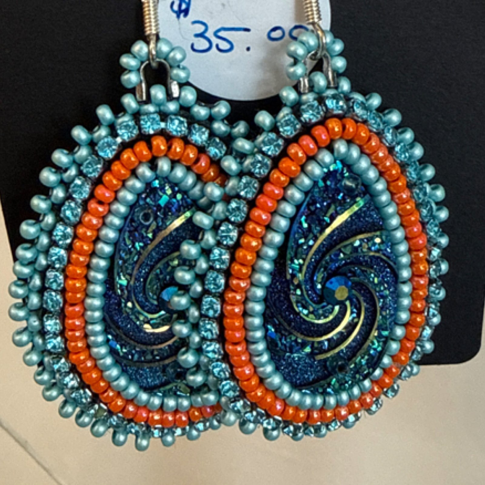 021-tear drop blue beaded earrings021-tear drop blue beaded earrings
