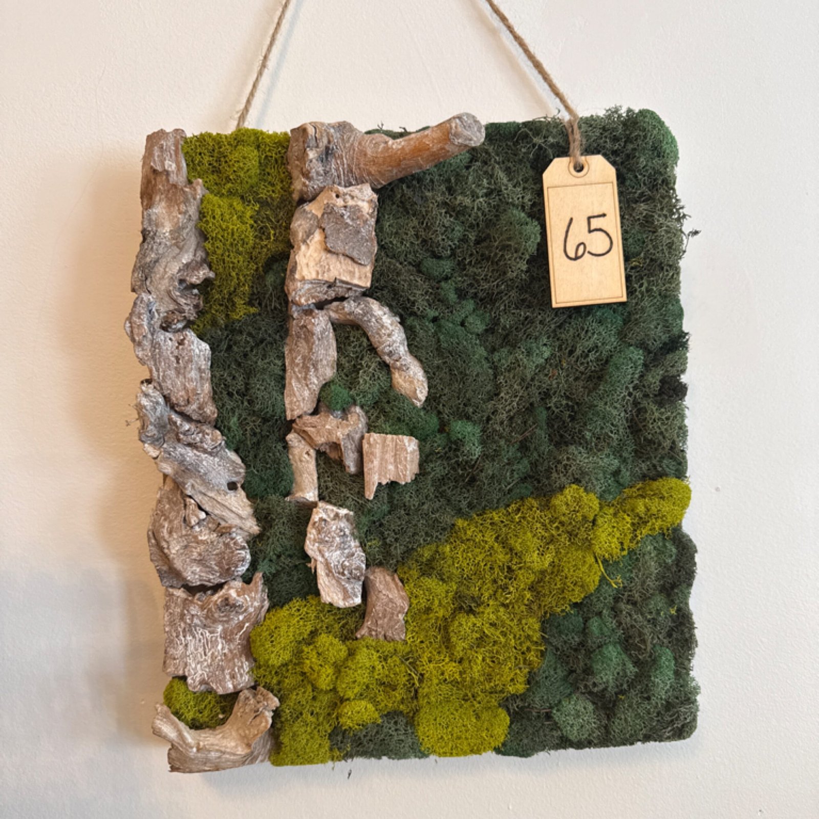Crafted with natural driftwood and accented by moss and moonstone, this decor piece brings a unique design and modern aesthetic to any space. Perfect for adding an organic touch to your home.